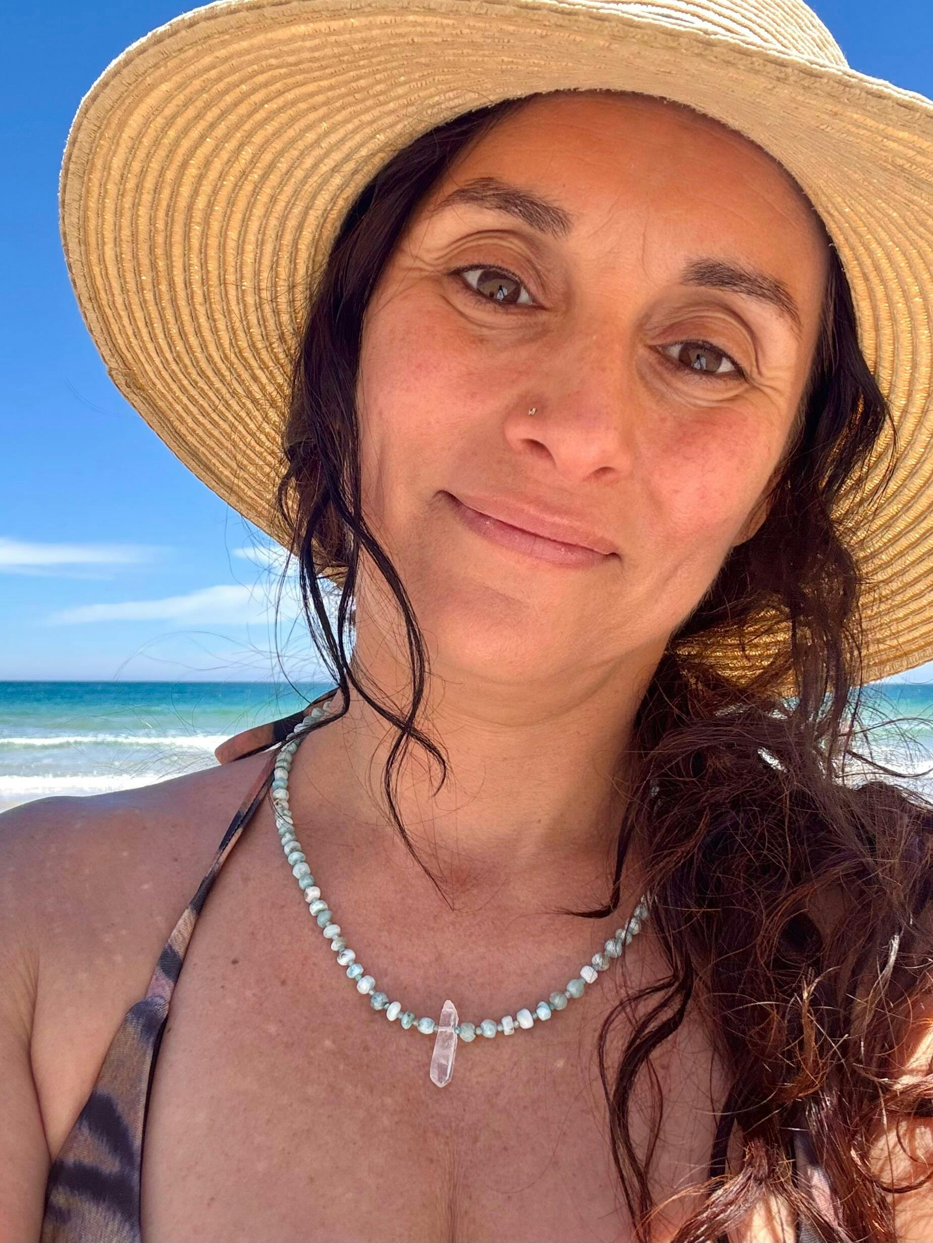 Wearing this necklace activates your remembrance of Lemurian lifetimes and the sacred knowledge you carried as a priestess. The Clear Quartz point acts as a crystalline antenna, amplifying your ability to channel higher frequencies and embody the sacred harmony of the Lemurian light.