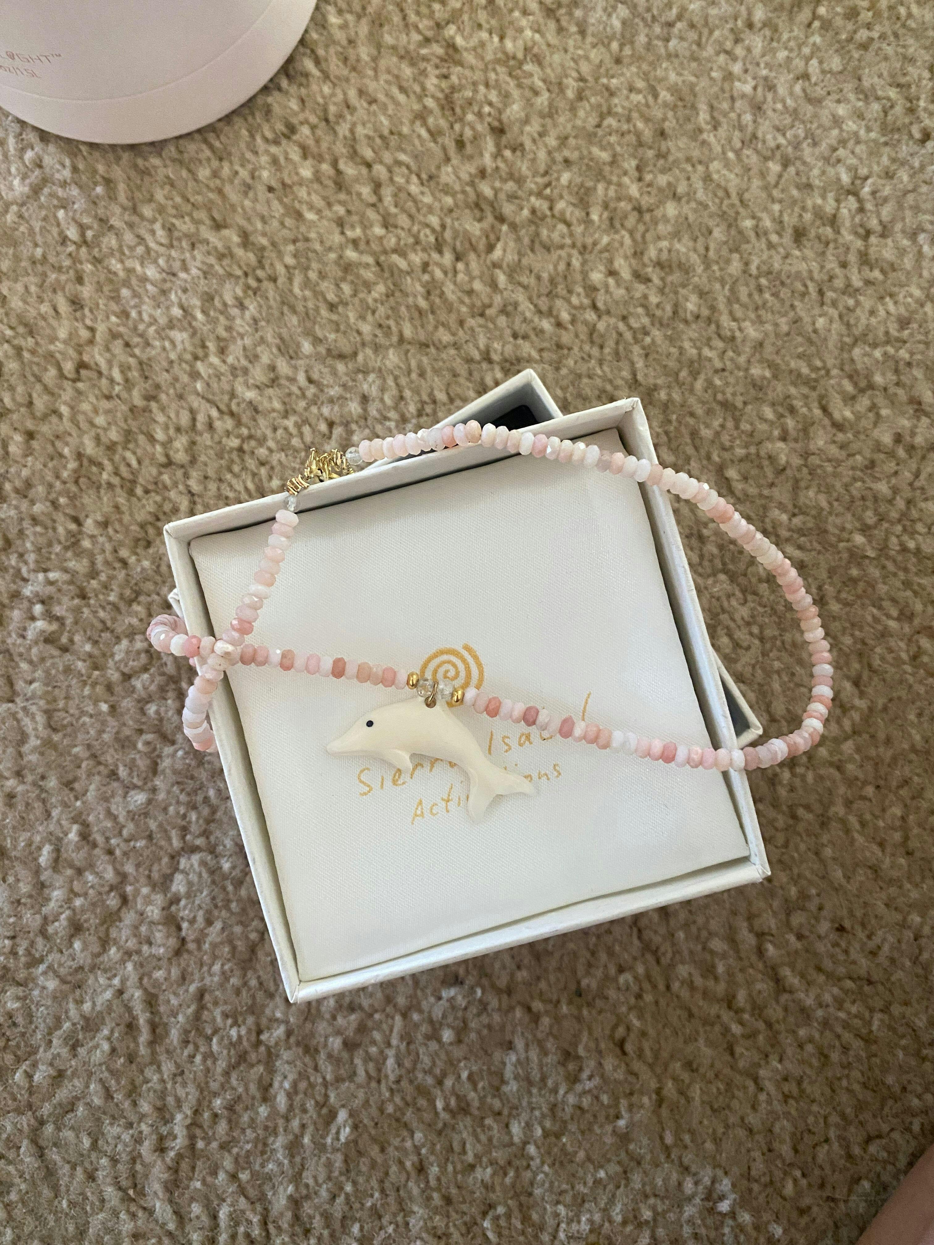 Hold your necklace before wearing and speak to your inner child with love. Give yourself permission to be carefree, playful, and creative. Let it rest close to your heart center, where the dolphin's wisdom can guide you back to the innocence and joy that have always been yours.